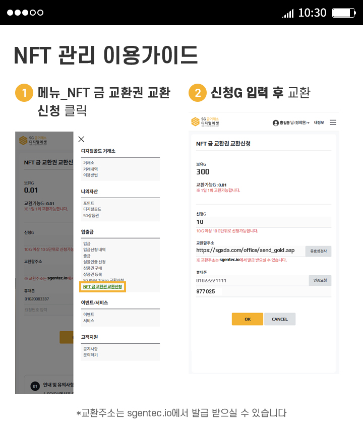 NFT 금 교환권 교환신청